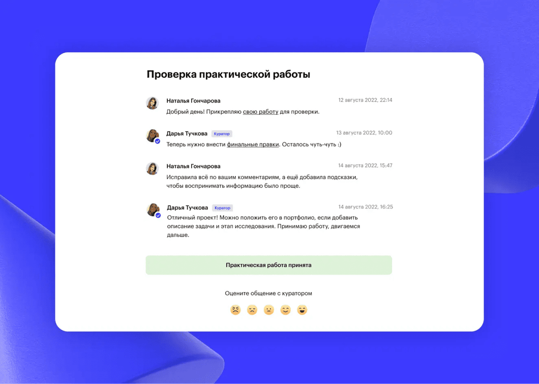 Учиться на платформе было очень интересно и познавательно, курсы помогли мне систематизировать весь опыт и получить новые знания.